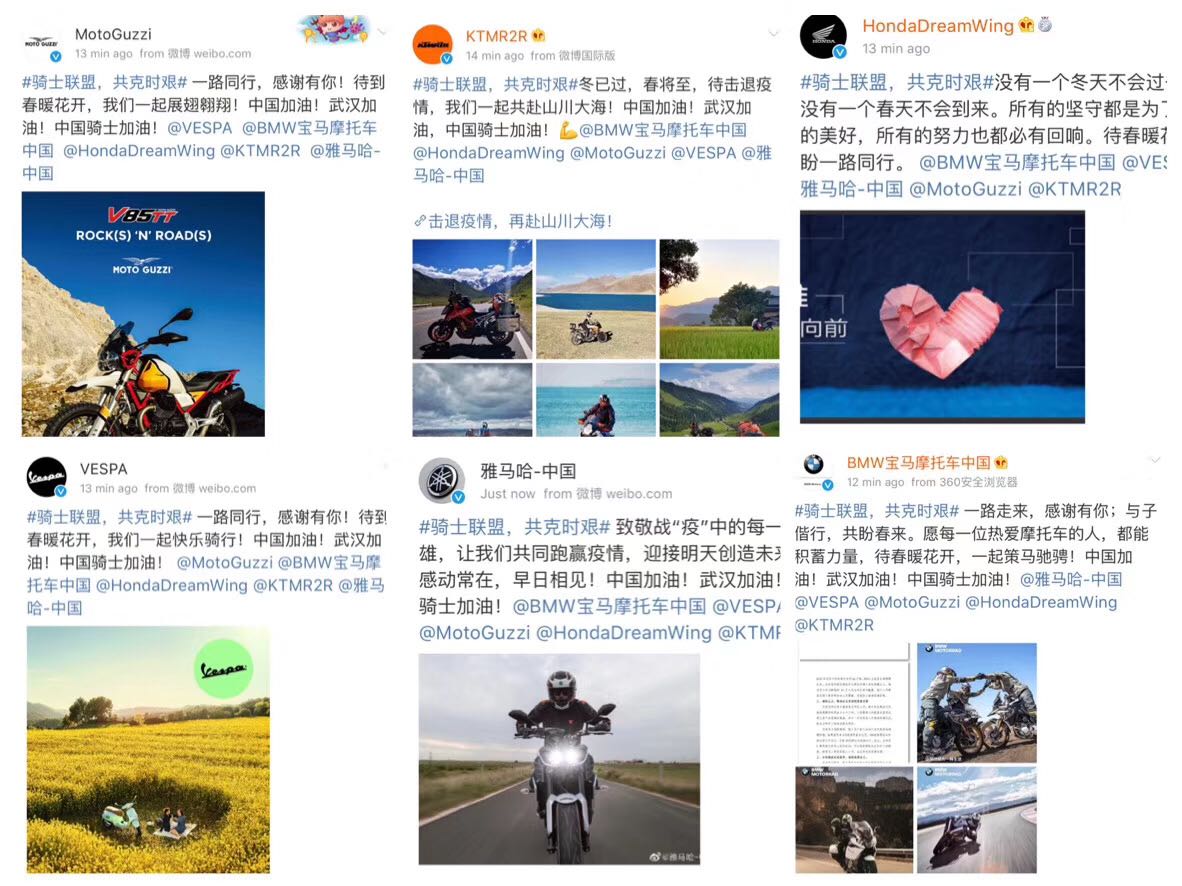 今日,宝马、本田、雅马哈、KTM、凯旋、比亚乔等多家摩托车企业联合发声:中国加油!武汉加油!中国骑士加油!