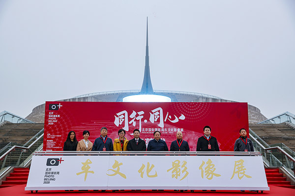 开幕式致辞后,北京国际摄影周2020组委会常务副秘书长、北京歌华文化发展集团有限公司党委书记、总经理李丹阳先生、北京市海淀区文化发展促进中心副主任于佩丽博士、中国汽车流通协会汽车俱乐部分会主任于亚辉先生、中国摩托车商会国际合作部长虞稚捷先生、中国汽车摩托车运动联合会副秘书长王小刚先生、中国道路交通安全协会主任张兵先生、北京市朝阳区文创实验区企业信用促进会副秘书长张磊先生、国网卓越科技文化(北京)有限公司总经理孔志国先生及AceGear 知行车谷联合创始人陈云娜女士共同上台启动了开幕仪式,宣布本届北京国际摄影周车文化影像展正式开展。