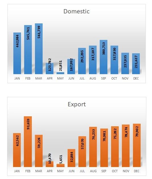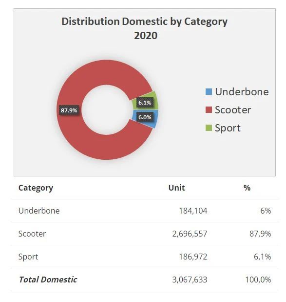 2020年印度尼西亚摩托车国内销售及出口情况