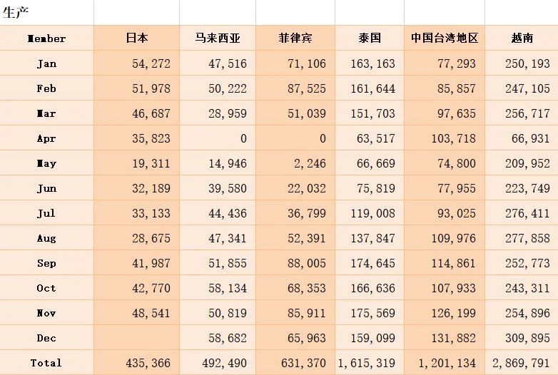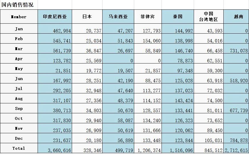 2020年亚洲部分国家及我国台湾地区摩托车产销情况