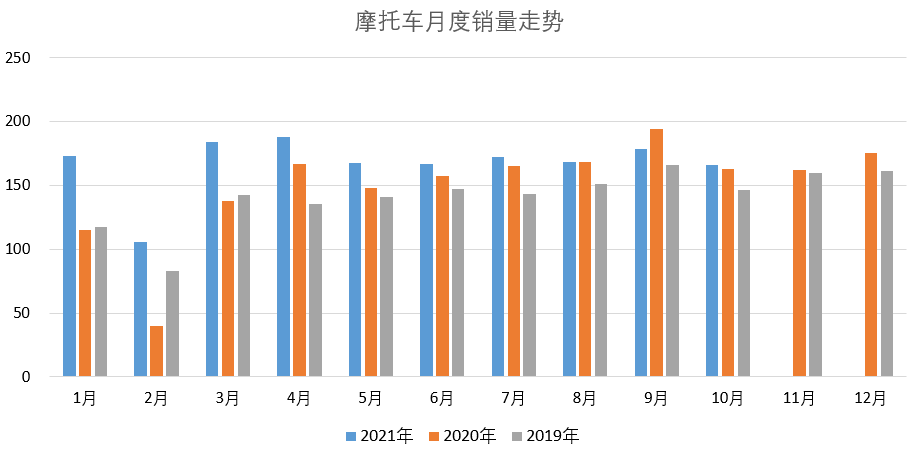 10月摩托车产销环比有所下降,在出口的拉动下,销量同比呈现小幅增长。国内市场同上月相比,有所下降,同往年相比基本保持稳定;摩托车出口虽然面临着原材料、物流上涨和订单转移的压力,随着国际市场需求进一步复苏,摩托车出口仍然保持较强的韧性。