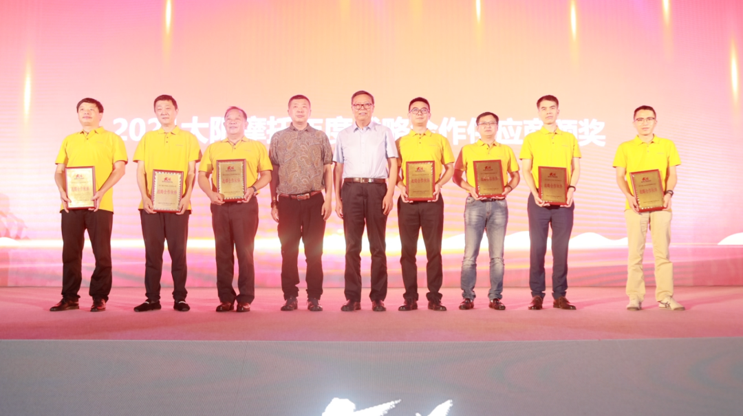 会议还对多年来和大阳精诚合作、风雨同舟的供应商战略合作伙伴进行了表彰。联合汽车电子有限公司、济南弘正科技有限公司、重庆利建工业有限公司、宁波赛福汽车制动有限公司、铁将军汽车电子股份有限公司、浙江嘀视科技有限公司、河南创佳线缆有限公司被授予“战略合作伙伴”称号。