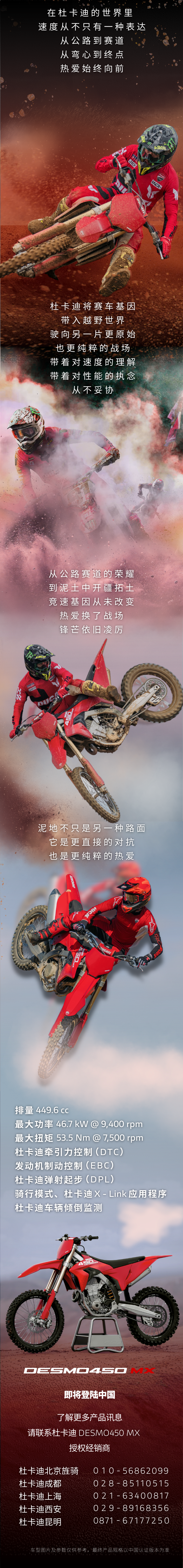 杜卡迪首款场地越野摩托车 DESMO450 MX 将于 4月初登陆中国